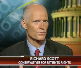 Scott was forced out as head of the for-profit hospital chain Columbia/HCA as a result of federal investigation against the company (who later plead guilty to Medicare fraud and paid a record $1.7 billion in fines). It was revealed that the company had been ripping off Medicare while giving kickbacks to doctors who steered patients to their hospitals. 6 days before he announced his candidacy, Rick Scott was deposed for a federal investigation on fraudulent business practices at his company Solantic.